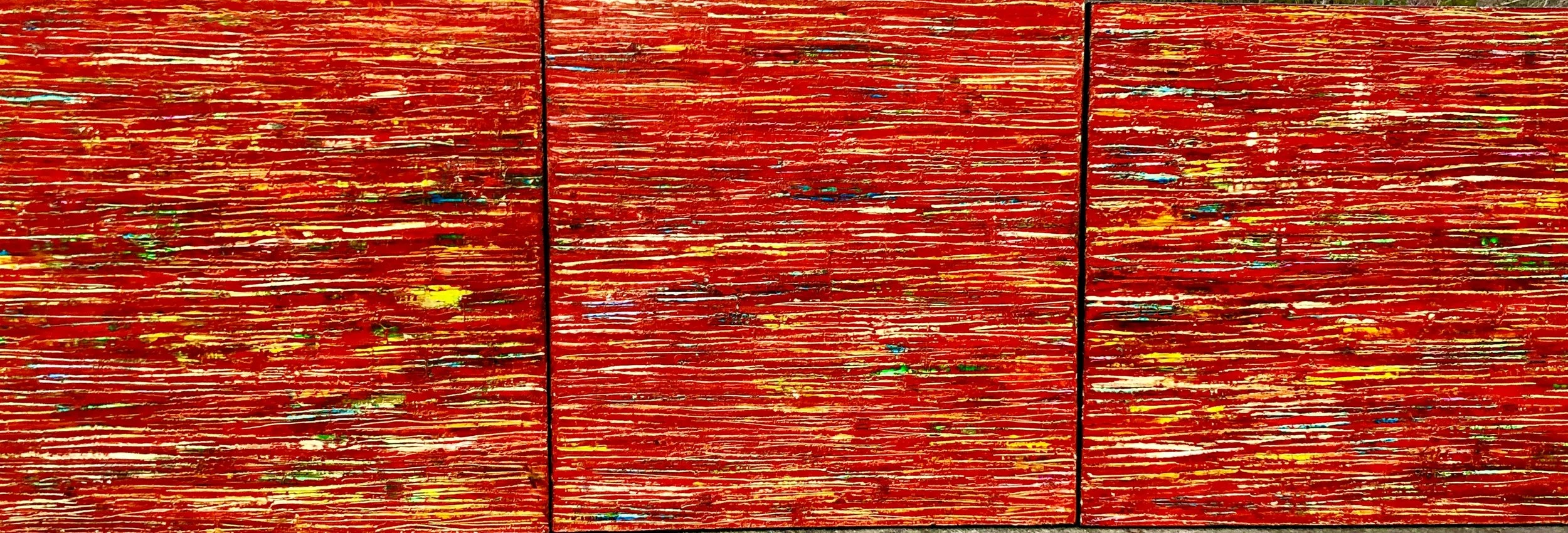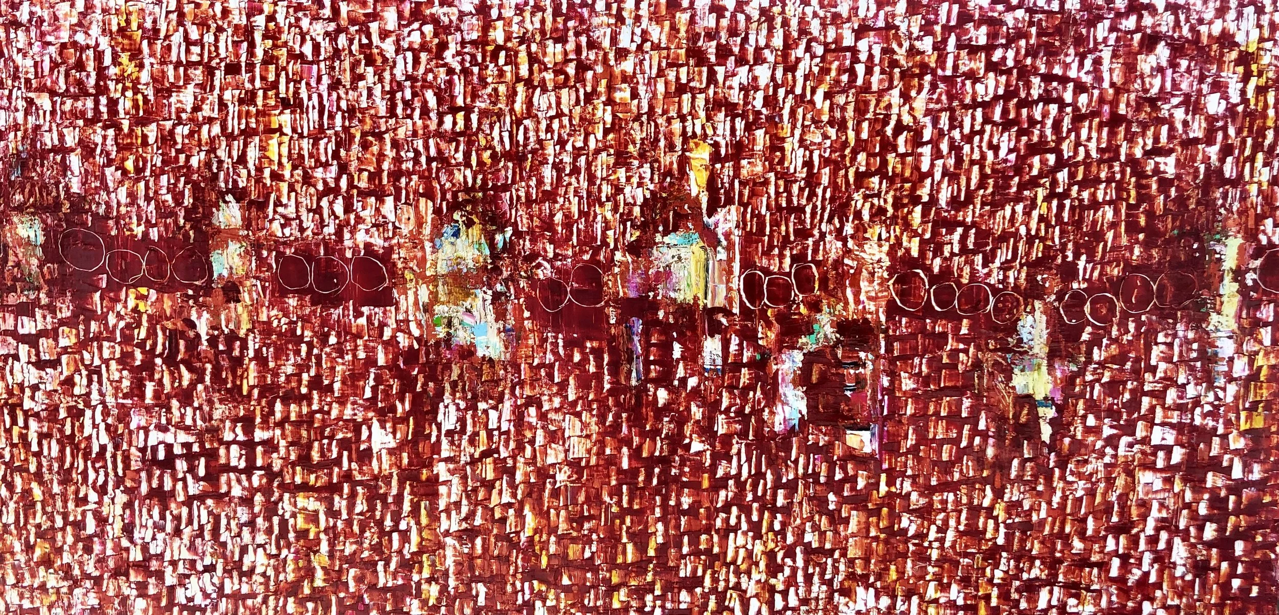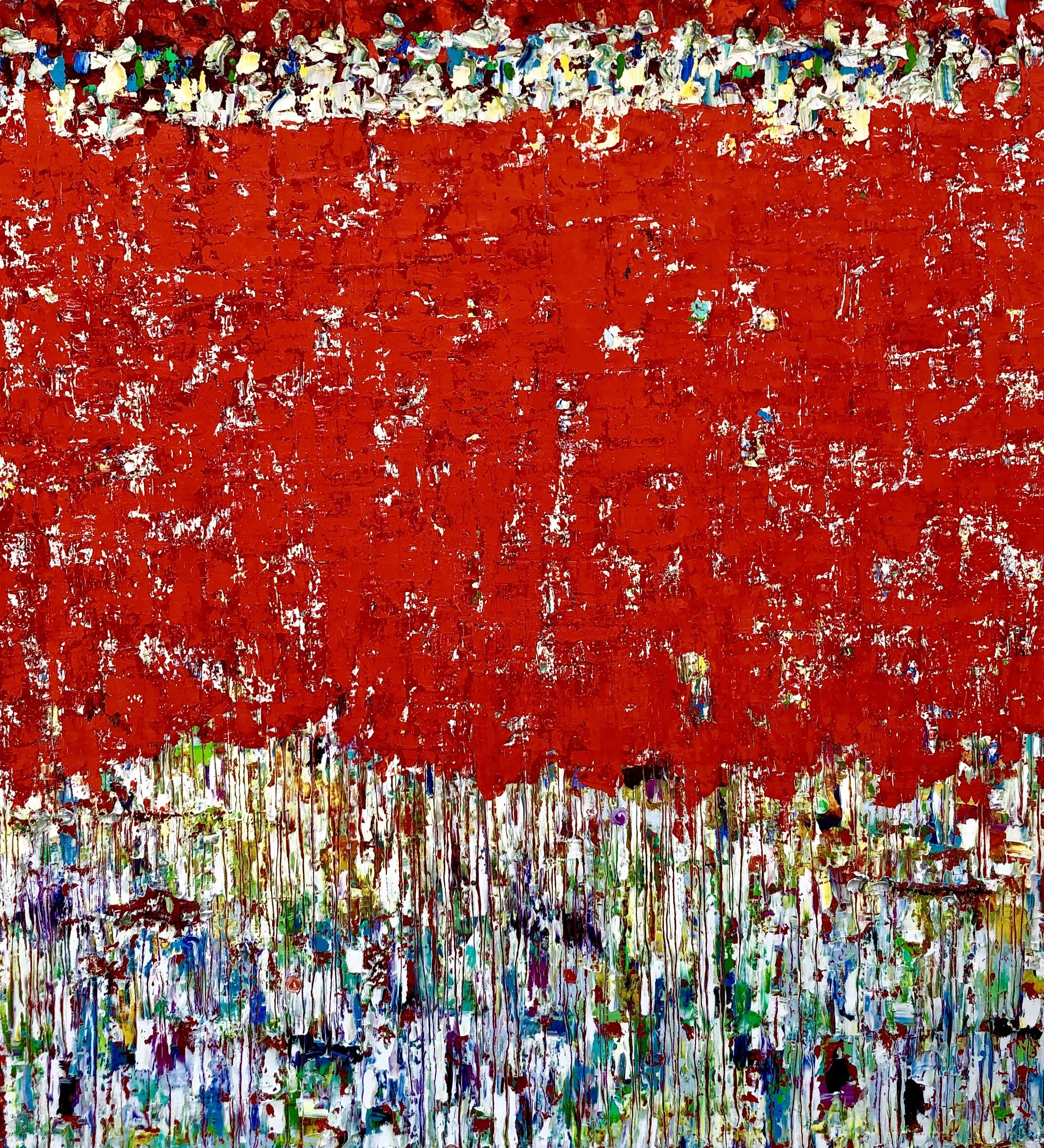 ‘IT’S RAINING CRIMSON” 36” x 72” x 2.5”, Oil on Canvas $7200