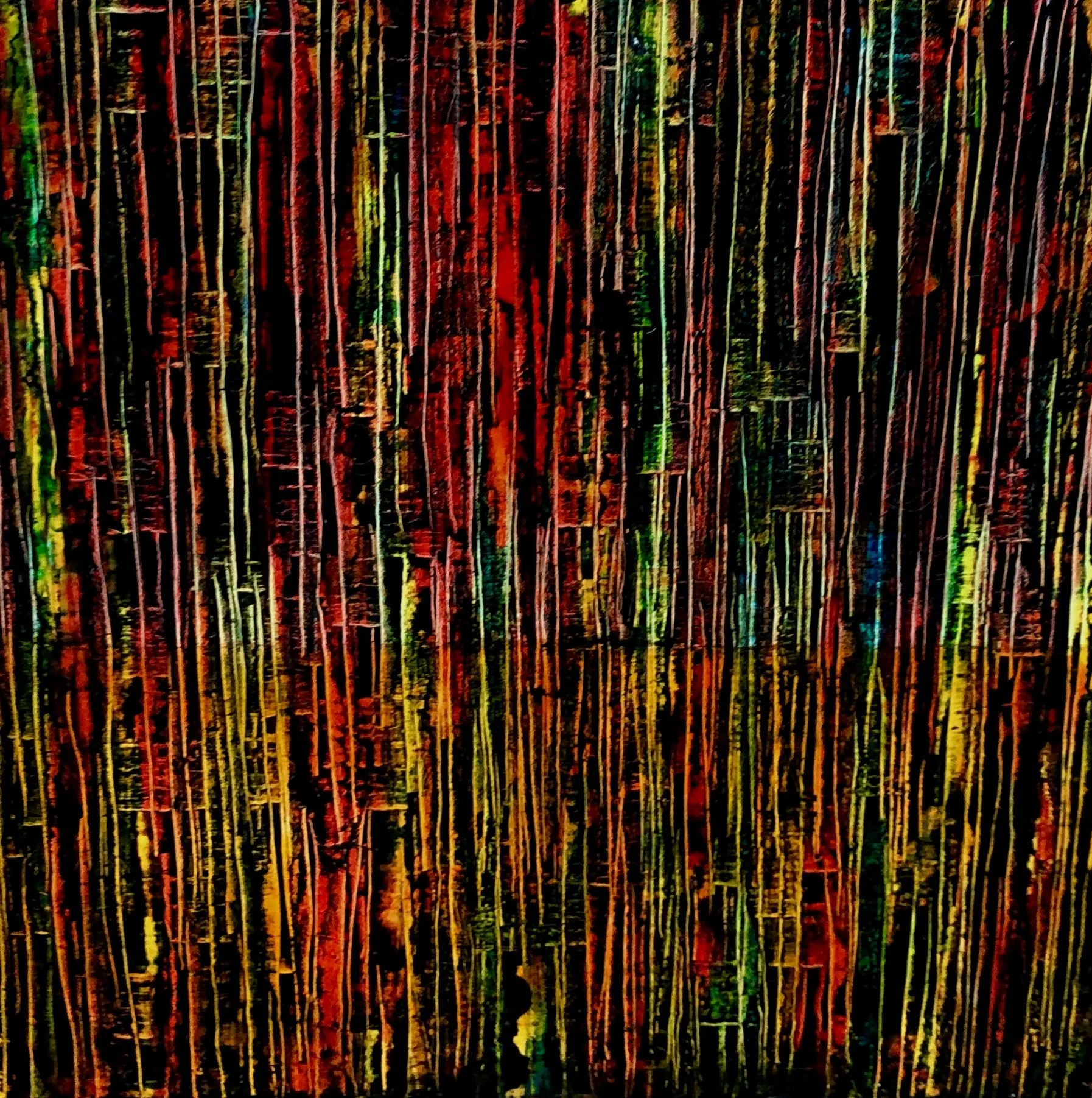 “NEON SKY” 36”x36”x1.5” Oil and Acrylic on Canvas $3200